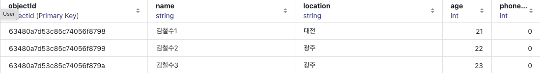 phone 컬럼이 추가된 모습입니다.