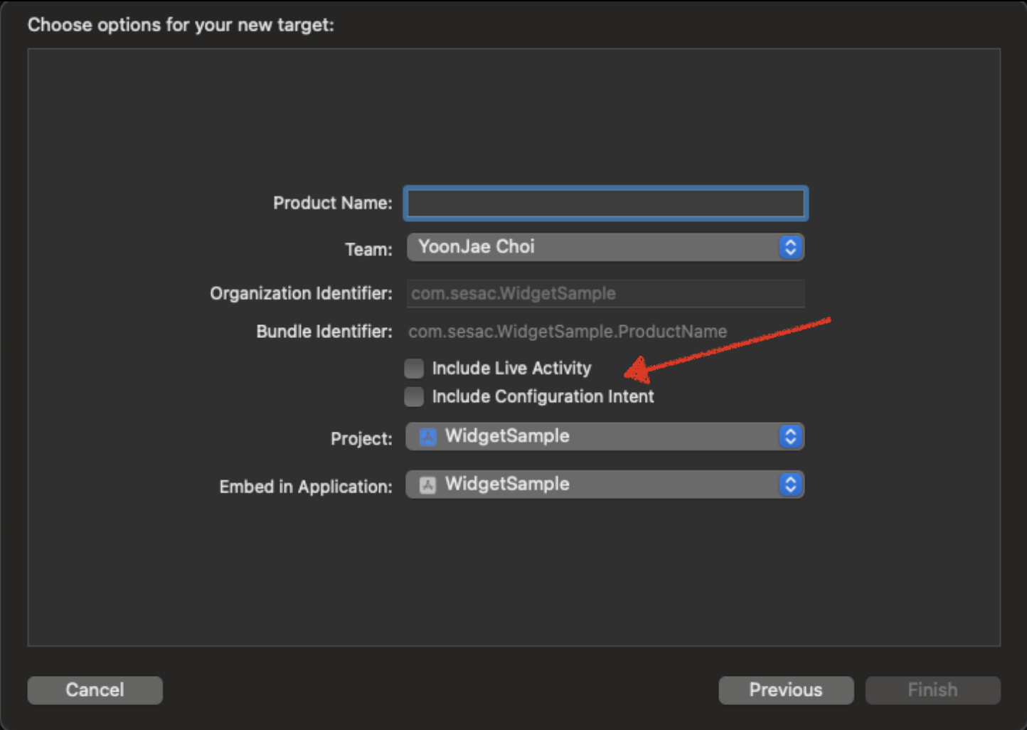 먼저 Include Live Activity 옵션은 이번에 새로나온 다이나믹 아이랜드를 만들 수 있는 설정입니다. 다이나믹 아일랜드 관심이 있으시면 공부해보시면 좋을거 같아요.