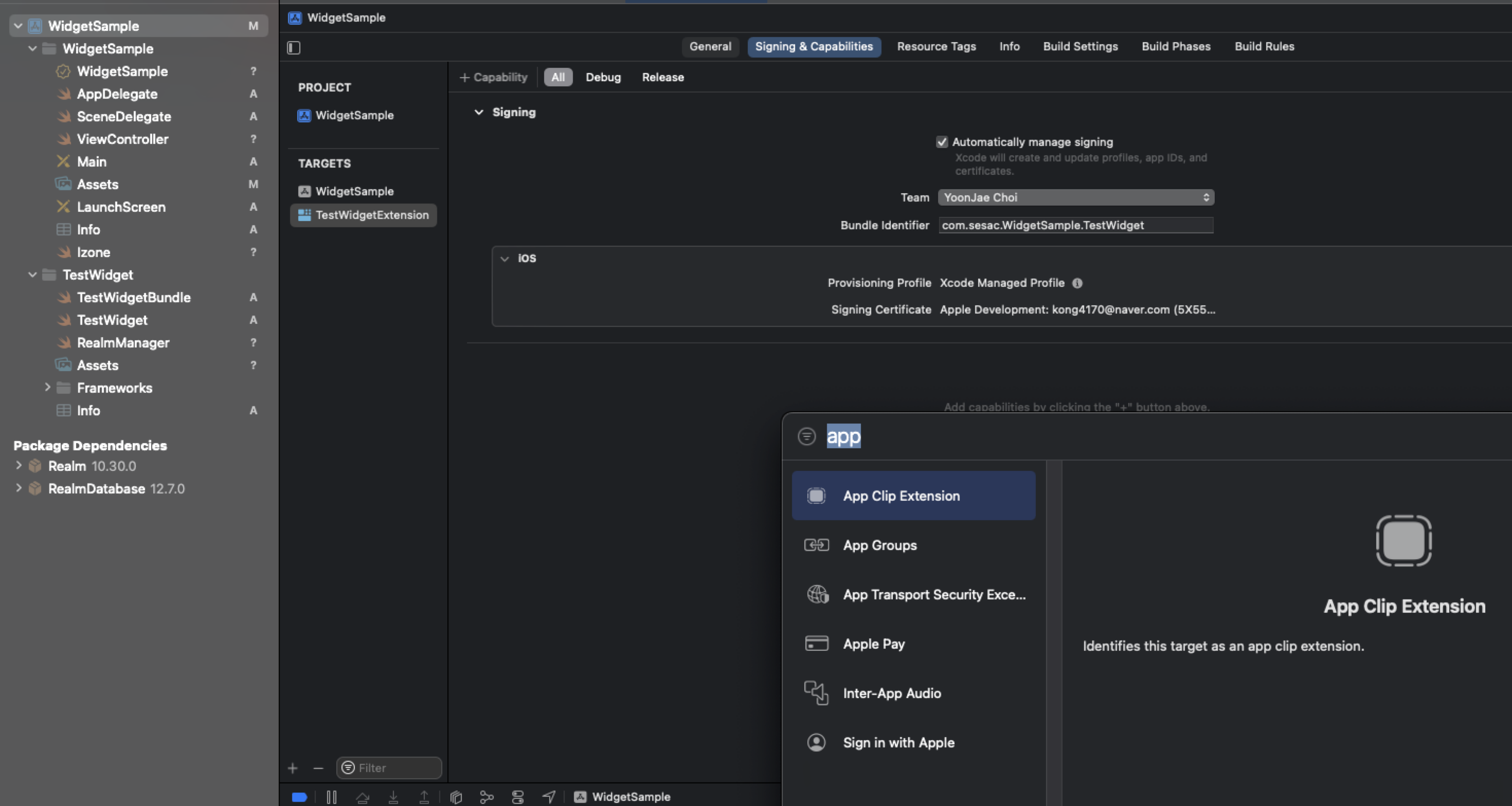 하나의 Target이 하나의 앱이니까 Widget또한 개인적으로 빌드가 가능합니다.