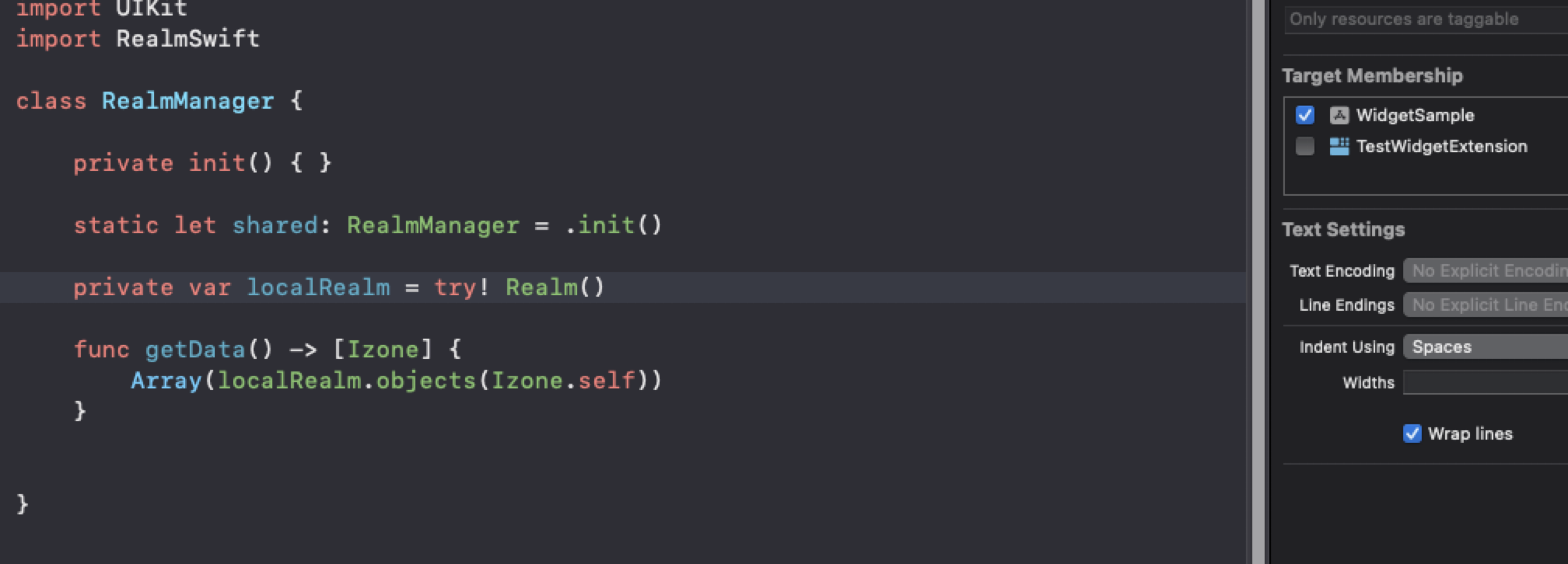 RealmManager 파일의 Targetmembership을 보시면 앱에만 체크가 되어있죠?