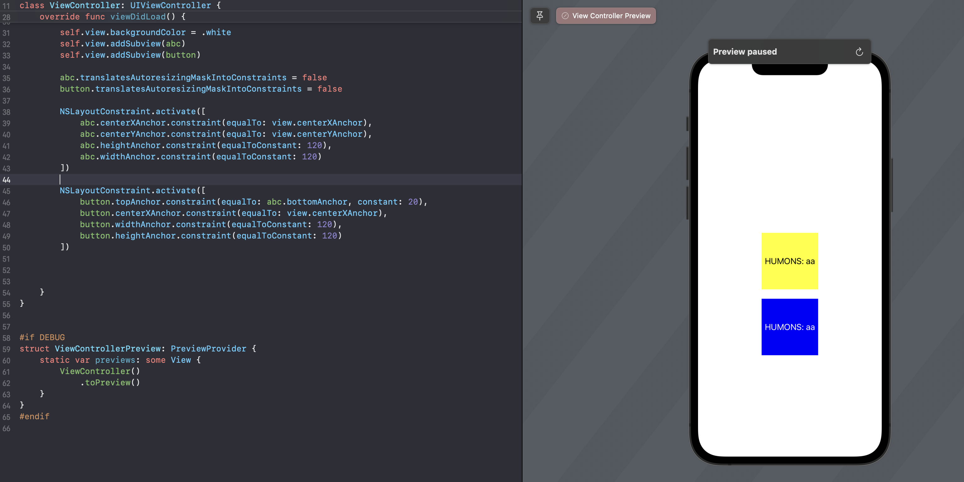 button.topAnchor.constraint(equalTo: abc.bottomAnchor, constant: 20),
