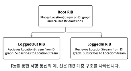 - 상위 Interactor와 하위 Interactor간에 추가 추상화 계층을 만듭니다. 이로 인해 Interactor간의 통신이 조금 더 어려워지고, RIBs간의 직접 연결 대신 반응형 통신이 채택에 권장됩니다.