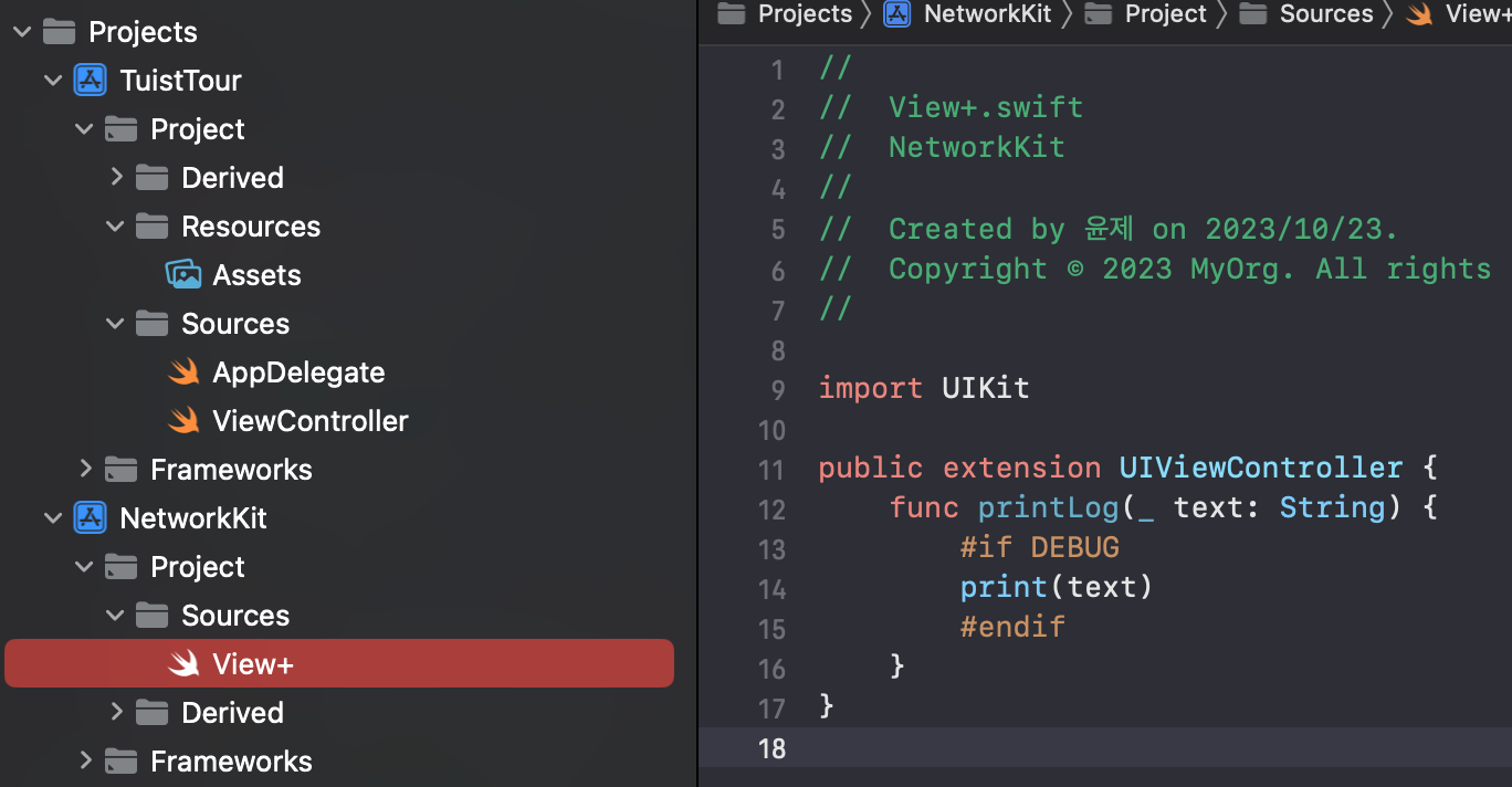 NetworkKit에 Sources파일이 없어서 import가 안된거니 원하는 파일을 추가해 줍시다. 저는 디버그 모드에 로그를 출력해주는 코드를 작성해 주었습니다.