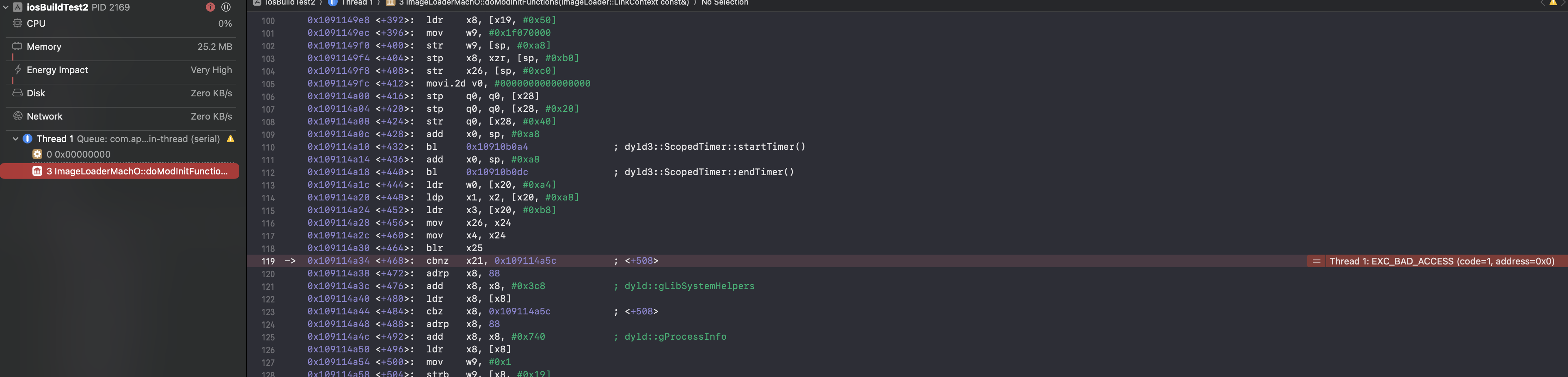 iOS 14 이하에서 약한 정의를 같는 심볼을 사용하는 바이너리 파일에서 런타임 crash 가 발생한다고 하네요. 회피책을 보니 OTHER_LDFLAGS bulid setting에서 -Wl, -ld_classic 을 추가해 주라고 하니 한번 해보겠습니다.